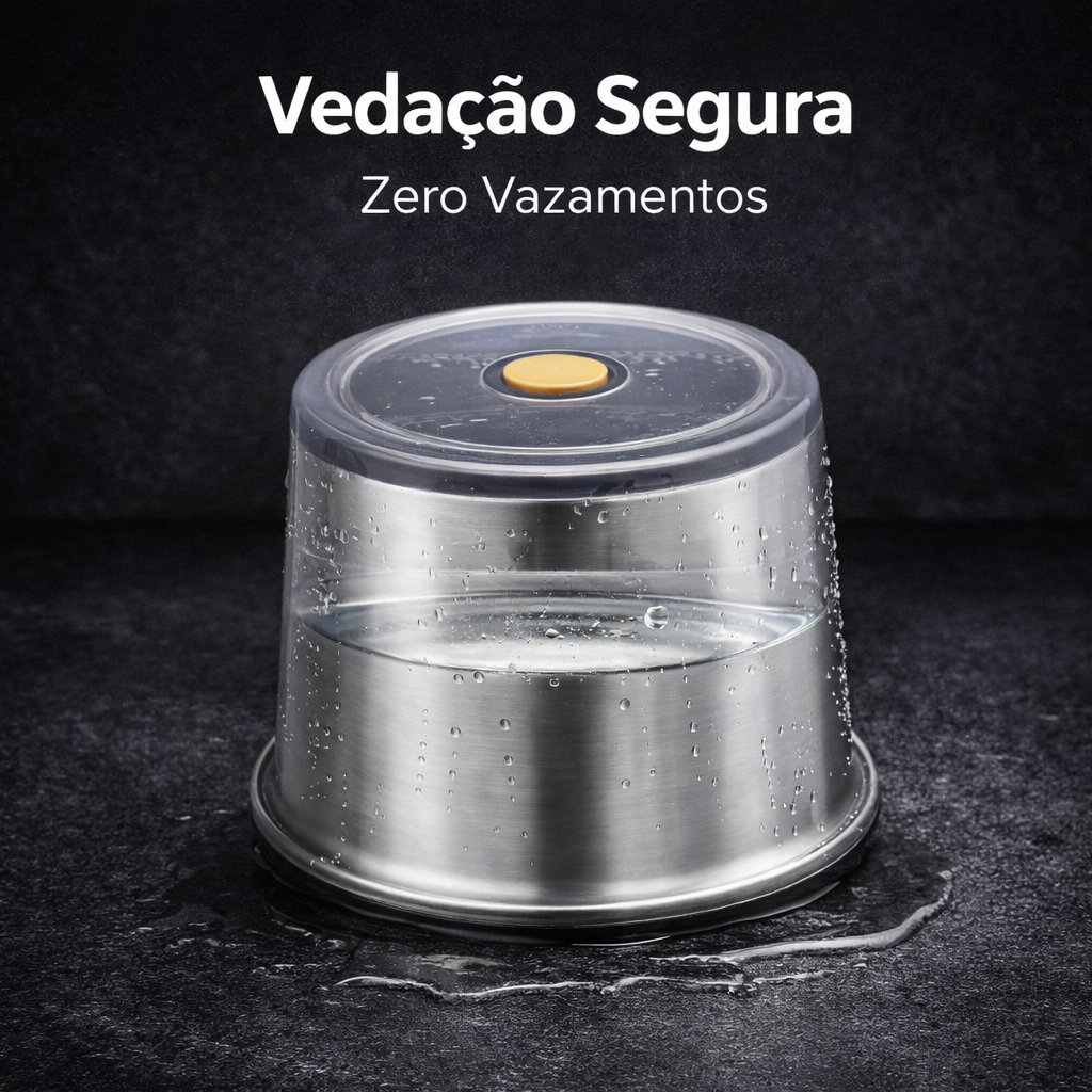 Mantenha seus alimentos frescos e organizados com o Conjunto de 4 Potes Herméticos Redondos em Inox, com capacidade de 450ML cada. Ideal para quem busca praticidade e durabilidade na cozinha, esses potes são perfeitos para armazenar alimentos secos, molhos, temperos e até sobras, preservando o sabor e a qualidade dos seus ingredientes. Fabricados em aço inoxidável de alta qualidade, esses potes garantem resistência à corrosão, facilidade na limpeza e maior higiene, além de serem seguros para contato com alimentos. O sistema hermético da tampa impede a entrada de ar e umidade, mantendo seus alimentos frescos por muito mais tempo. Além de funcionais, os potes têm design moderno e elegante que combina com qualquer estilo de cozinha, ajudando na organização prática do seu espaço. São leves, compactos e fáceis de empilhar, otimizando os armários e deixando tudo sempre à mão. Especificações: - Quantidade: 4 unidades - Formato: Redondo - Material: Aço Inox (corpo) e tampa hermética - Capacidade: 450ML cada - Sistema de fechamento hermético que preserva a frescura dos alimentos Benefícios: - Mantém os alimentos frescos por mais tempo - Produto durável, resistente e fácil de limpar - Design versátil e elegante - Ideal para múltiplas finalidades na cozinha Garanta já seu conjunto e transforme a maneira como você armazena e conserva seus alimentos, unindo qualidade, praticidade e beleza em um único produto.