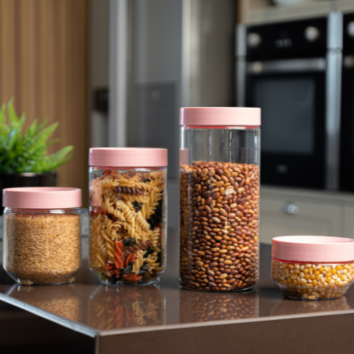 Kit 4 Potes Organizadores Conecta Translúcido 300ml/600ml/900ml/1.200ml UZ