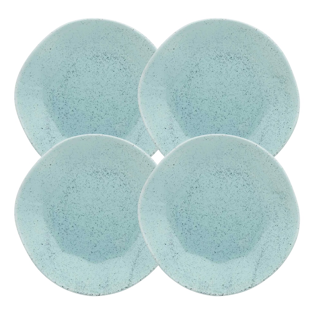 Kit 4 Pratos Porcelana Sobremesa Rustico Ryo Blue Bay Decorado 21,5cm Oxford