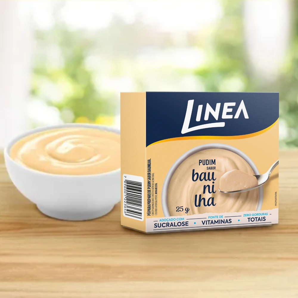 Os pudins Linea são uma deliciosa adição à sua linha de produtos, oferecendo uma variedade de sabores e apresentações para agradar a diferentes paladares. Os pudins Linea se destacam por seu sabor rico e textura cremosa. Cada porção individual é prática e perfeita para quem busca uma experiência indulgente sem abrir mão da saúde. Preparados sem adição de açúcares, são ideais para quem deseja reduzir o consumo de açúcar, sem abrir mão da qualidade. 1 Kit composto por: - 4 Caixas individuais de pudins em pó Linea Sabor Baunilha 25g (cada). INGREDIENTES: Amido, mix de vitaminas (C, B3 (niacina), B5, B6 e B9 (ácido fólico), aromatizante, espessante agar, edulcorantes: sucralose e acesulfame de potássio, antiumectante dióxido de silício e corantes: tartrazina e amarelo crepúsculo FCF. NÃO CONTÉM GLÚTEN.