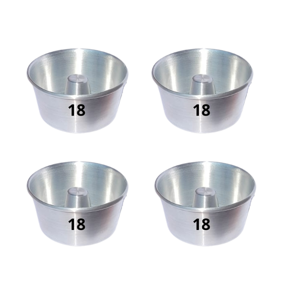 Kit 4 (QUATRO) Forma Bolo Redonda PUDIM C/TUBO N 18 Assadeira Alumínio
