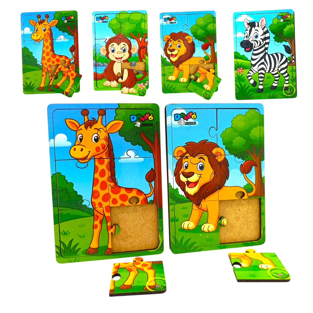 Kit 4 Quebra Cabeça em Mdf 6 Peças Jogo Pedagógico Infantil Lúdico Educativo floresta
