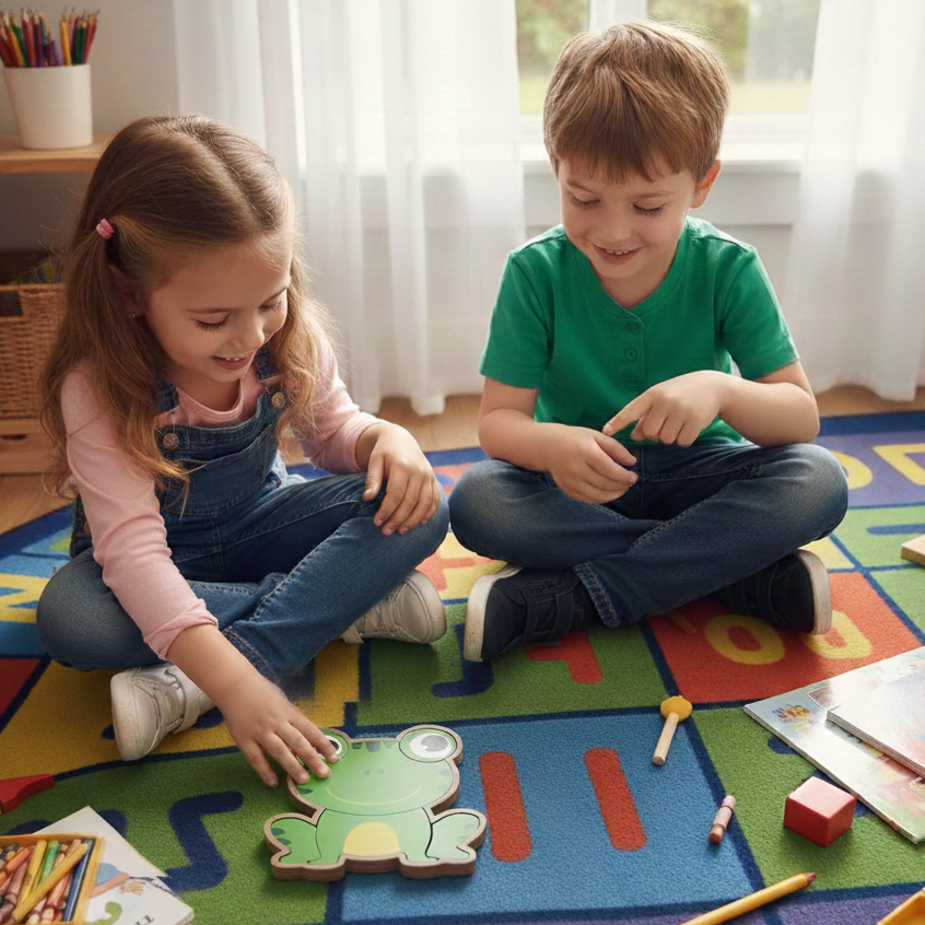 O Kit Educativo Infantil com 4 Quebra-Cabeças em MDF foi desenvolvido para estimular o aprendizado das crianças de forma divertida, segura e inteligente. Ideal para a primeira infância, o kit combina cores vibrantes, formatos amigáveis e ilustrações encantadoras que despertam o interesse e a curiosidade dos pequenos. Cada quebra-cabeça ajuda no desenvolvimento cognitivo e sensorial, incentivando a criança a reconhecer cores, formas e padrões, além de trabalhar a coordenação motora fina, a concentração e a memória visual. Produzido em MDF resistente, com acabamento suave e peças fáceis de manusear, é perfeito para mãos pequenas e para o uso diário, seja em casa, na escola ou em atividades pedagógicas. ✨ Benefícios do Produto • Desenvolve habilidades cognitivas e sensoriais • Estimula a coordenação motora e o raciocínio lógico • Auxilia no reconhecimento de cores e formas • Trabalha memória visual e concentração • Ideal para crianças em fase de desenvolvimento 📦 Conteúdo do Kit • 4 quebra-cabeças infantis ilustrados • Material: MDF • Peças coloridas, resistentes e educativas 🎯 Indicação • Brinquedo educativo e pedagógico • Indicado para crianças em fase de desenvolvimento • Ideal para aprender brincando 💬 Em caso de dúvidas, entre em contato conosco pelo chat.