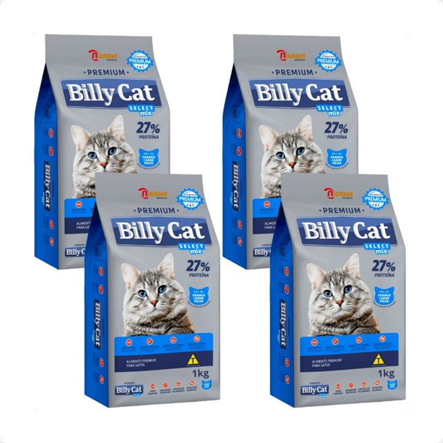 Kit 4 Ração Billy Cat Select Gatos Adultos Mix - 1Kg