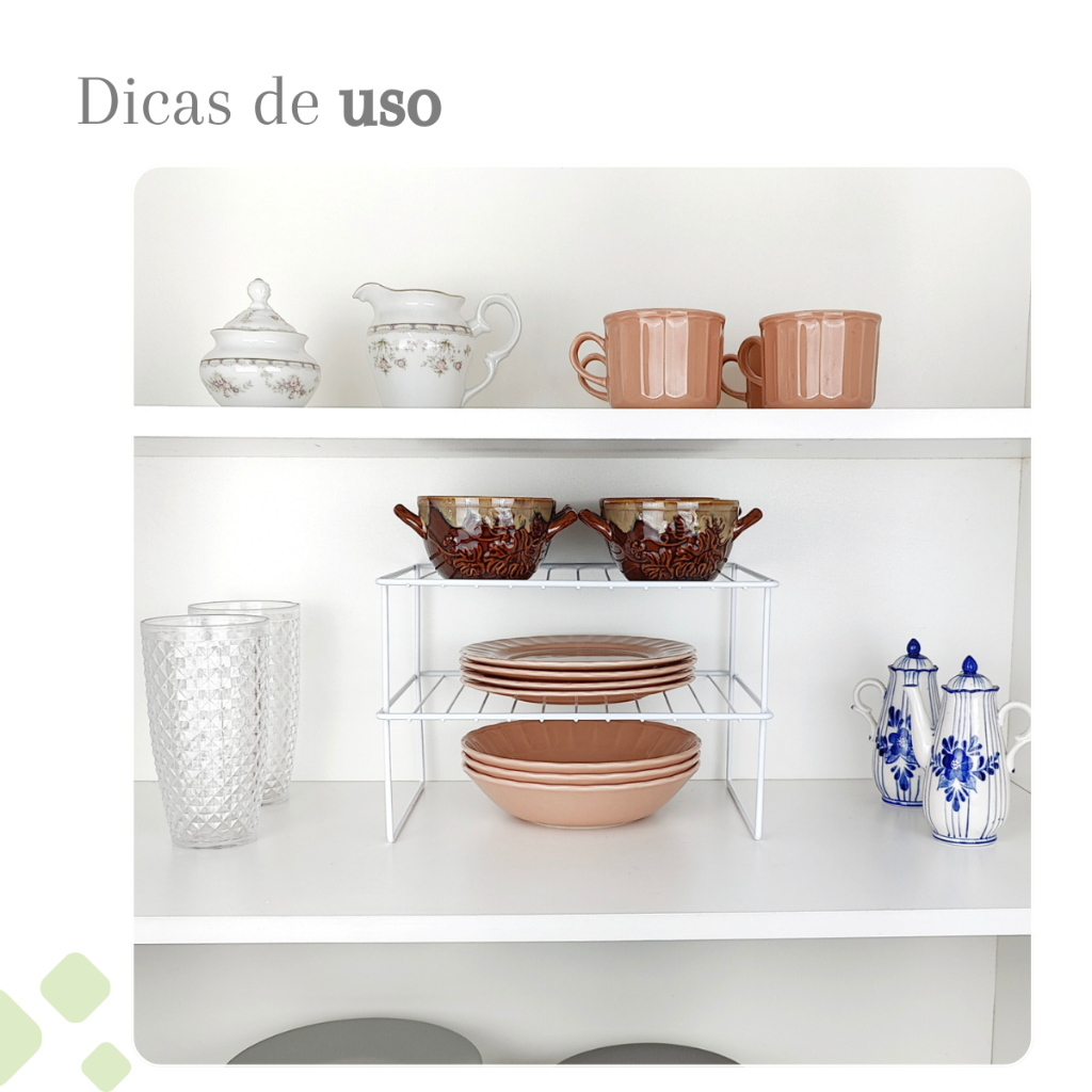 ***ORGANIZADORES A PRONTA ENTREGA, GARANTA JÁ O SEU!!! Como está a organização do seu armário? Precisa de mais espaço? Se for esse o seu caso, quero compartilhar uma dica com você =) A Tomelin Aramados pensou e desenvolveu produtos ideais para proporcionar organização nos armários da sua casa. É a solução ideal para acabar com o empilhamento das louças e deixar sua cozinha mais organizada e prática para o seu dia a dia. Além das funcionalidades, os organizadores da Tomelin Aramados possuem o visual moderno e clean deixando o ambiente lindo e prazeroso. E o melhor, não dependem de parafusos ou ferramentas para instalar, não é uma maravilha???!!! ****NÃO ESPERE, ADQUIRA JÁ O SEU ANTES QUE ACABE**** CONTÉM: 04 Rack Organizador Objetos Armário Cozinha Prateleira Branco CARACTERÍSTICAS: Rack Organizador Objetos Armário Cozinha Prateleira Suporta: até 15kg Dimensões: 30 x 24 x 20cm (C x L x A) Material: Aço Carbono Tinta: Epóxi Produto 100% Nacional ***** Foto meramente demonstrativa com sugestão de uso do produto***** Tags: organizador para armário; organizador para armario cozinha; suporte para xicaras; organizadores de armário; porta tampa de panela; porta utensilios branco; organizar multiuso;