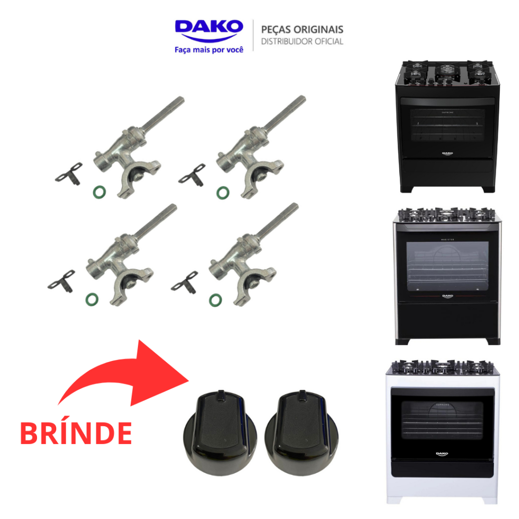 KIT 4 RAMAIS REGISTRO ORIGINAIS BOCAS +BRINDES FOGÕES DAKO SUPREME GLASS 4 E 5 BOCAS ENVIO IMEDIATO