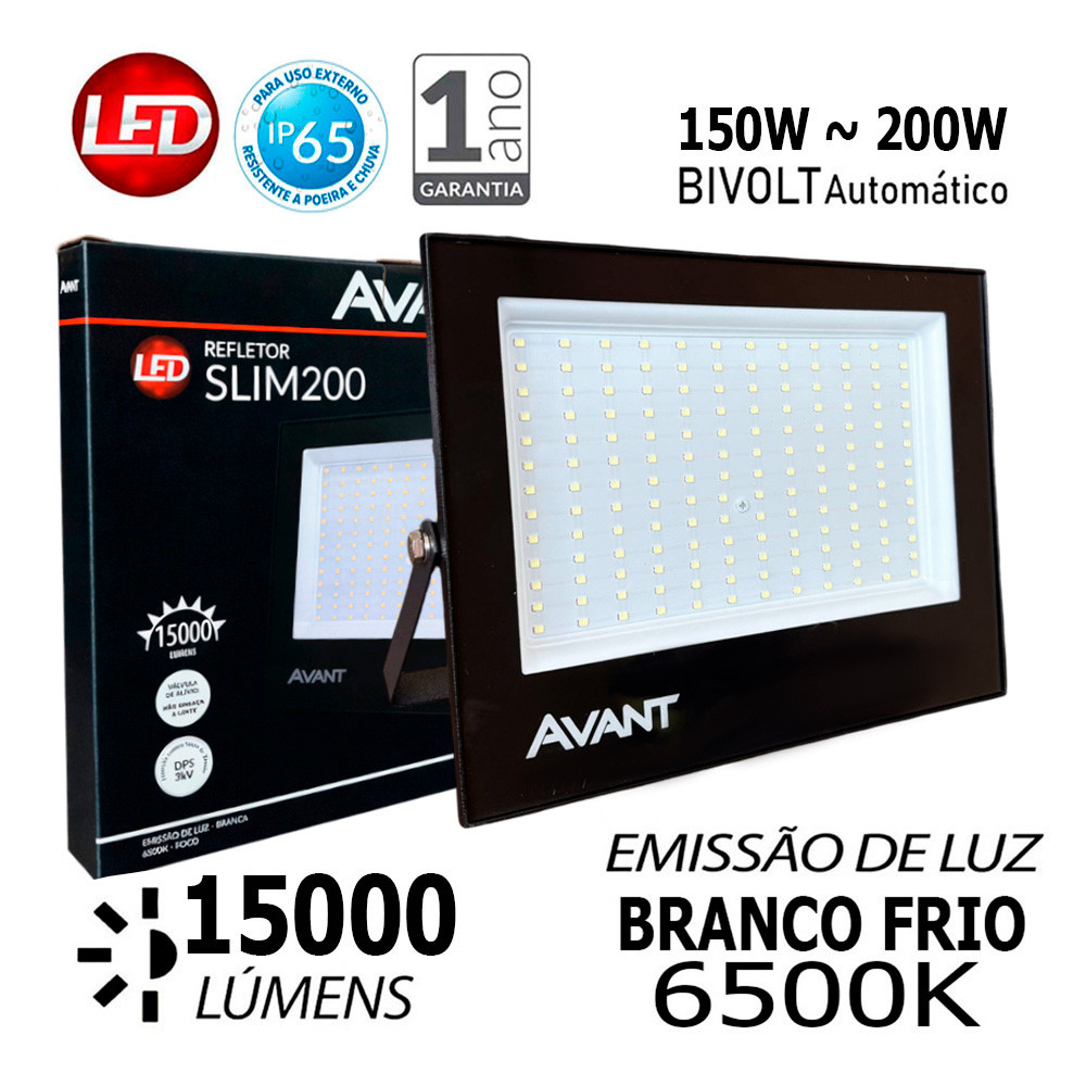 Kit 4 Refletor Led Slim200 Luz Branco Frio 6500W Bivolt 200W Iluminação Externa Comercio Avant