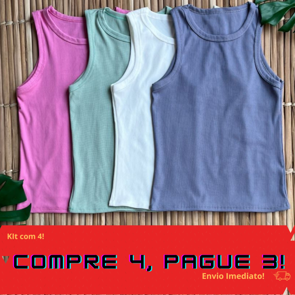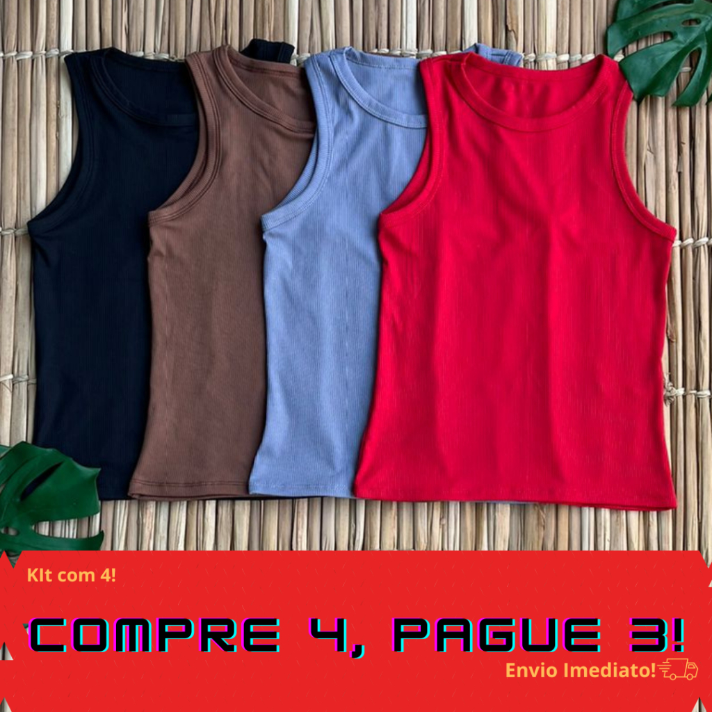 Kit 4 Regata Feminina Canelada Camiseta Básica Blusa Casual Tendência Verão