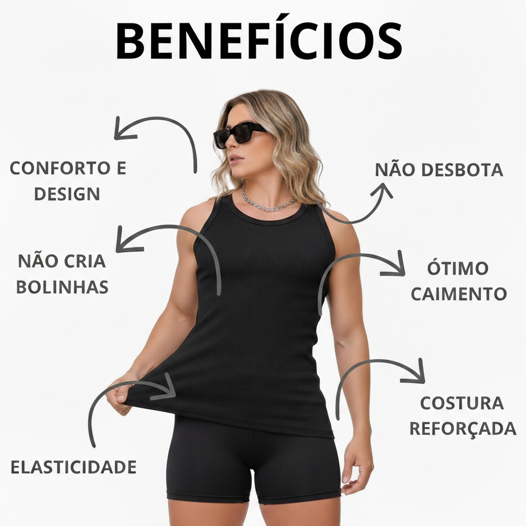 Bem Vindos a Protec PB Kit 4 Regata Premium Feminina Modelo Americano Ribana Canelada Algodão e Elastano Primeira Linha Descrição: Modelo: ✅ Regata Básica: A peça tem um corte simples e tradicional. Canelada: O tecido canelado apresenta pequenas elevações e depressões em linhas verticais, conferindo uma textura diferenciada e um ajuste mais ajustado ao corpo. Design e Estilo: ✅ Versátil: Pode ser usada sozinha em dias quentes ou como uma camada adicional sob outras roupas em dias mais frios. Confortável: O tecido canelado se ajusta ao corpo, proporcionando uma sensação de aconchego sem ser restritivo. Casual e Despojado: Perfeita para compor looks casuais, podendo ser combinada com jeans, shorts, saias ou calças de moletom. Qualquer Duvida nos Chame no Chat