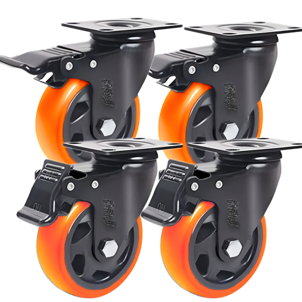 Kit 4 Rodas giratória Rodizio Grande com trava Freio Rodinhas para Moveis Pesados 3" Polegada RRJ