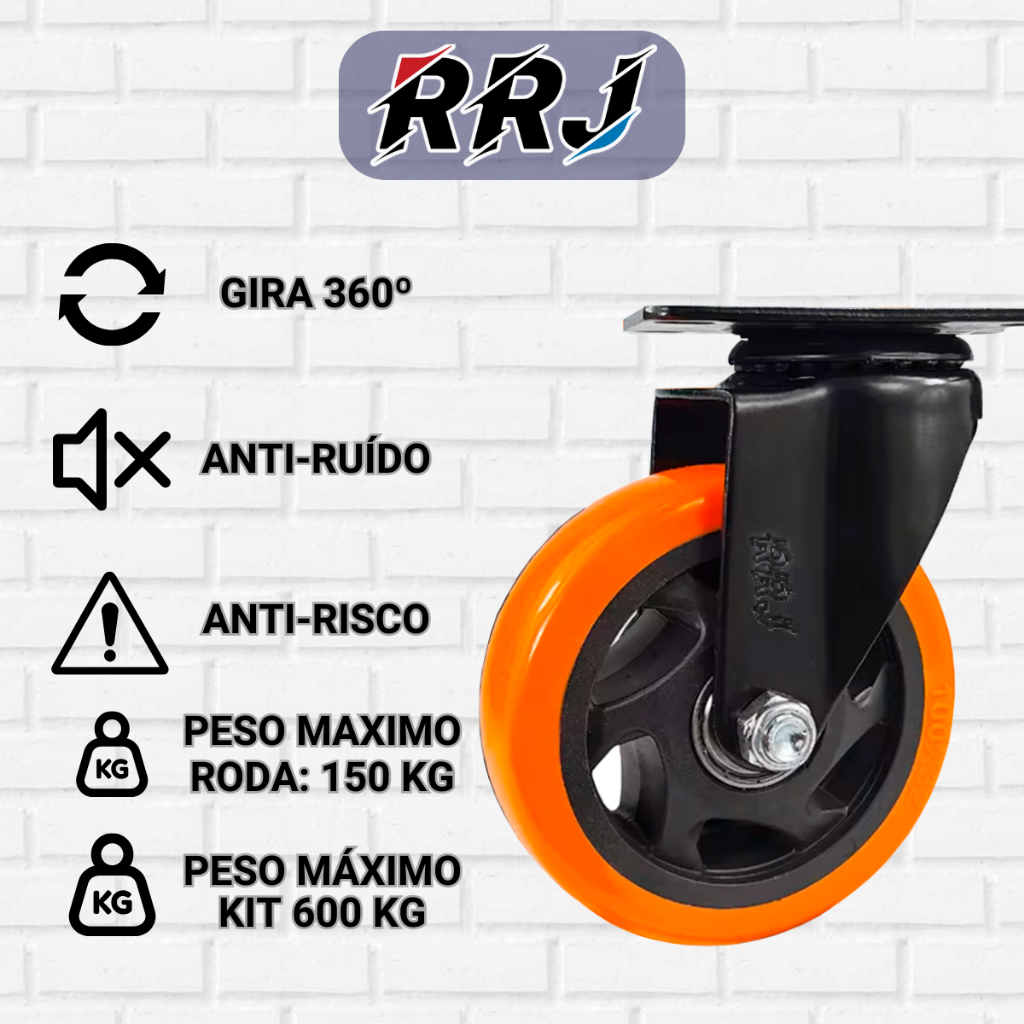 Transforme sua mobilidade com os nossos Rodízios RRJ! Ideal para uma variedade de ambientes, nossos Rodízios é a solução perfeita para quem busca conforto e eficiência em móveis e equipamentos. Com um design robusto e funcional. Características Principais: - Anti - Risco - Anti - Ruído - Rolamento de esferas de precisão - Material de Alta Qualidade - Conforto e Mobilidade - Instalação Prática - Versatilidade de Uso Especificações Técnica: Material da roda: PVC Capacidade Por Roda: 150 KG Capacidade por Kit: 600 Kg Unidades Giratórias: Sim / 360° Unidades com trava: Não Tipo de Eixo: Rolamento Esferas Duplo Tamanho do furo: 10 mm / 0,04" Polegadas Espessura da Roda: 32 mm / 1,25" Polegadas Altura da Roda: 75 mm / 3" Polegadas Altura Total: 105 mm / 4" Polegadas Chapa com 4 furos para fixação Comprimento Chapa: 90 mm/3,5" Polegadas Largura Chapa: 62 mm / 2,4" Polegadas Comprimento entre os furos: 70 mm / 3" Polegadas Largura entre os furos: 45 mm / 1,8" Polegadas Recomendamos usar 85% da capacidade de peso total para ficar dentro da margem de segurança do fabricante. RRJ - Um mundo movido por rodas, com qualidade e confiança. Onde resistência e robustez se unem na essência.