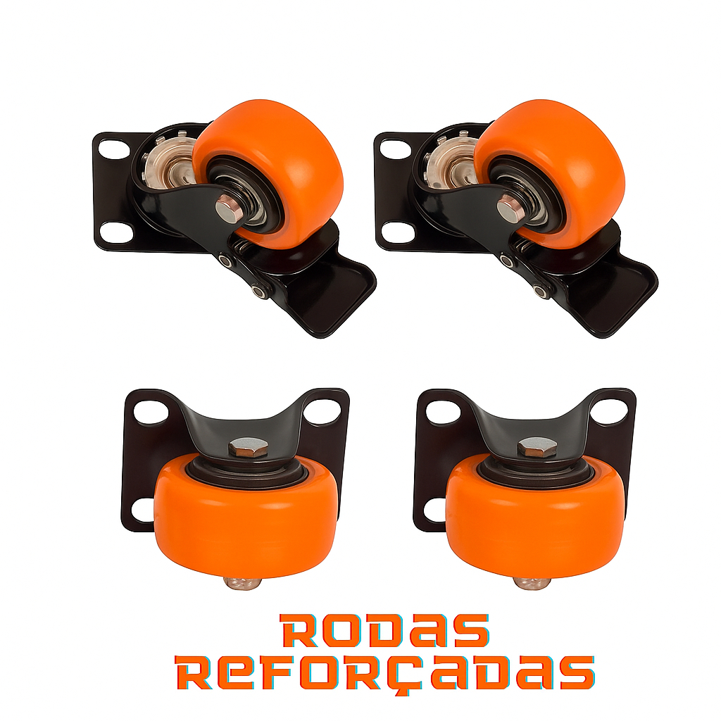 Kit 4 Rodinhas com Freio 2 Giratórias e 2 Fixas Reforçadas Fácil Instalação Ideal Para Móveis e Carrinhos