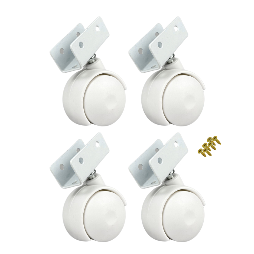 Kit 4 Rodizio Branco Roda Rodinha Berço Cama Chapa U 20mm