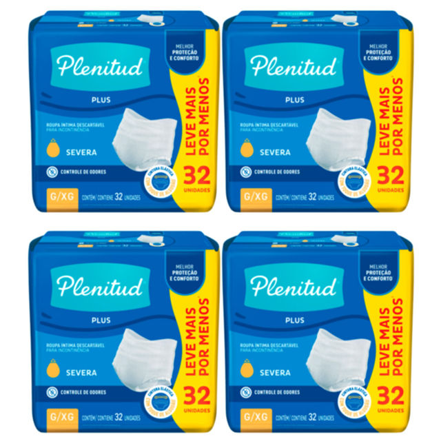Kit 4 Roupa Íntima Plenitud Plus Unissex Tamanho G/XG 32 Unidades Descartáveis