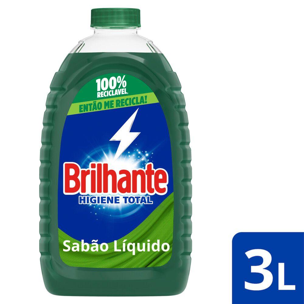 Kit 4 Sabão Líquido Brilhante Higiene Total 3l - Com enzimas de Limpeza Profunda - Combate o odor mau - Com Bicarbonato de Sódio - Limpeza profunda desde a primeira lavagem - Os melhores resultados de limpeza - Remover odores impregnados nos tecidos A nova fórmula de Brilhante Higiene Total líquido combina os melhores resultados de limpeza com a ação de bloqueio do mau odor das roupas, contém o poder das enzimas, proporcionando uma limpeza profunda e evitando que a sujeira se deposite nas roupas. Entre limpeza profunda e bloqueio do mau odor? Escolha os dois! Com Brilhante, você sempre leva mais. Brilhante quer se tornar um aliado nas tarefas diárias de seus consumidores e busca trazer praticidade através de produtos inovadores e que todo mundo pode usar, diminuindo o peso das tarefas e liberando o tempo para as demais atividades do dia a dia. Dicas: produtos lava roupas não devem ser misturados com produtos a base de cloro. Tempo de molho ideal: até 2 horas. Recomendado para a maioria dos tecidos e para roupas brancas e coloridas, mas em geral produtos lava roupas não são adequados para lavar lã, seda, couro e algodão cru. Seque suas roupas em local arejado. Para outros tipos de máquina, ajuste de dosagem com a recomendação do fabricante. - Kit 4 Sabão Líquido Brilhante Higiene Total 3l cada - Compre Produtos Brilhante