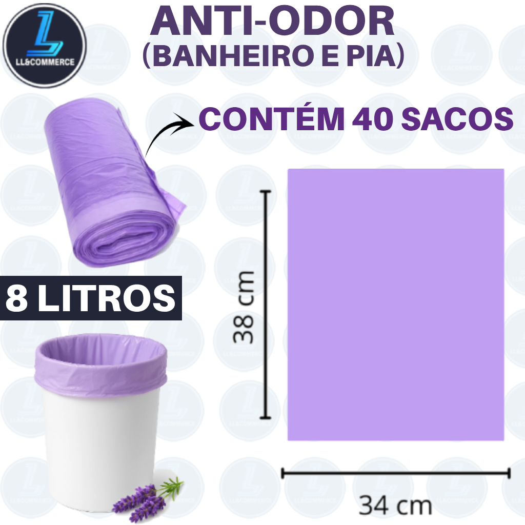 Kit 4 Saco de Lixo Lavanda 8L 160 Sacos Banheiro Pia Reforçado Anti-Odor Não Vaza