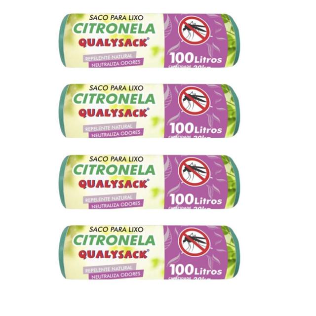 Kit 4 Saco De Lixo Pia E Banheiro Com Aroma Citronela 100L - 60 Unidades