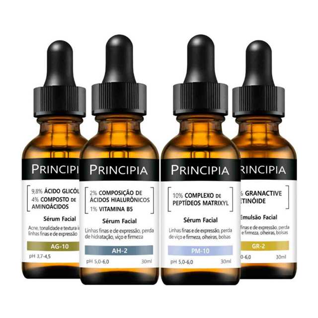 Kit 4 Séruns Principia Glicólico + Hialurônicos + Peptídeos + Retinóide