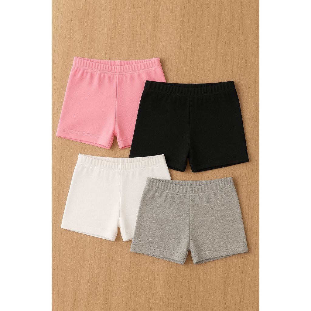 Kit 4 Shorts Infantil Menina Básicos de Malha – Para Brincar, Dormir ou Usar por Baixo de Vestido e saia. Short infantil