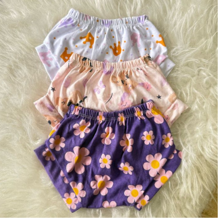 Kit 4 Shorts Tapa Fralda Para Bebês Estampado 100% Algodão Barato Verão roupas Infanis frescas dia a dia Enxoval