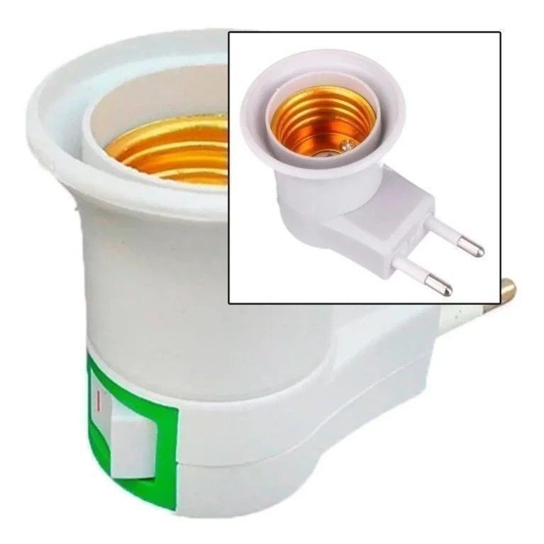 Soquete E27 Bocal Lâmpada Tomada Botão Chave Liga Desliga * Com um design resistente, fácil para você ligar ou desligar a luz. * Perfeito para você que precisa de uma lâmpada em um local estratégico. * Possui botão Liga/Desliga. * Soquete E27 (tamanho padrão redondo). * Tensão: 110 e 220V (Bivolt). * Material: Plástico e Metal. * Dimensões: Altura: 4 cm Largura: 4 cm Comprimento: 7 cm Lighting Type:Light Bulbs