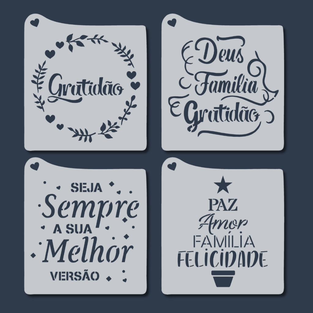 Kit 4 Stencil Frases Motivacionais Palavras Positivas Molde para Artesanato, Pintura, Tecido, Mdf