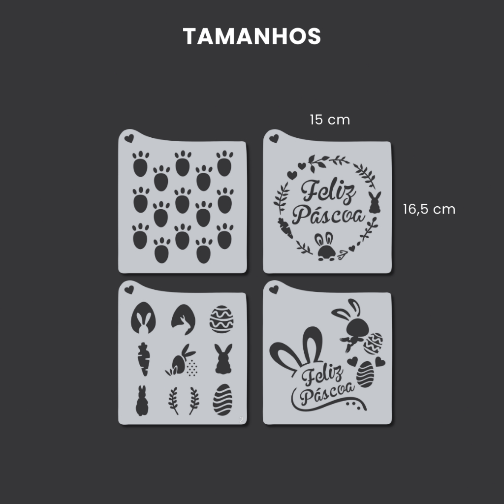 | Kit 4 Stencil Molde Vazado para Páscoa, Coelhos, Feliz Páscoa, Ceno... este produto | R$ 11,70 | 27% | 4.9/5 | 30 |