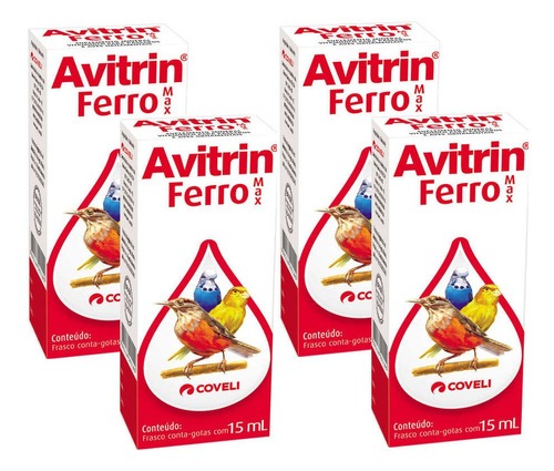 Kit 4 Suplemento Vitamínico Avitrin Ferro Max para Pássaros - 15 mL