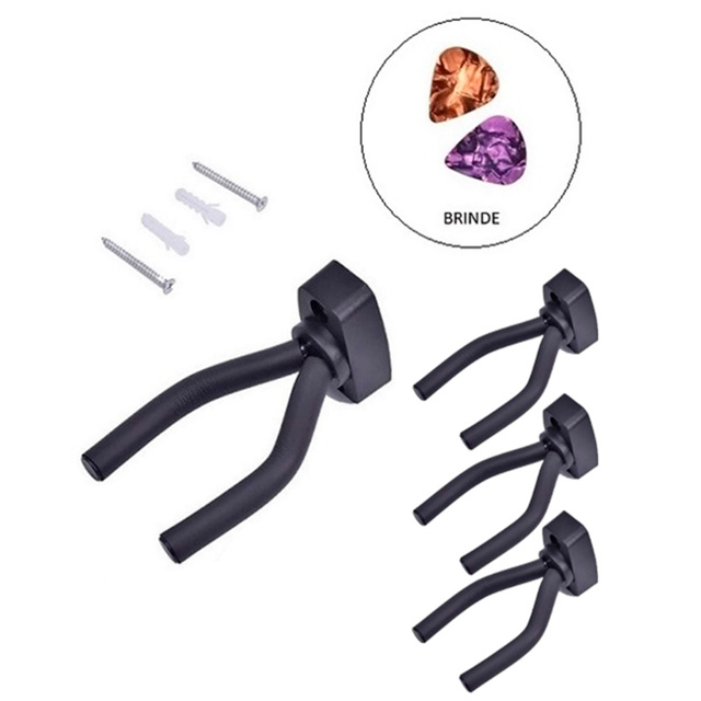 Kit 4 Suportes de Parede Violão Cavaquinho Ukulele Guitarra Violino + 2 Palhetas