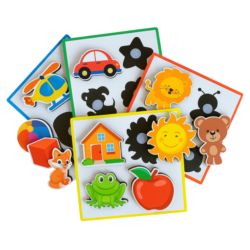 Kit 4 Tabuleiros Jogo Das Sombras Brinquedo Educativo Montessori 20 Peças Velcro Brinqui Lu