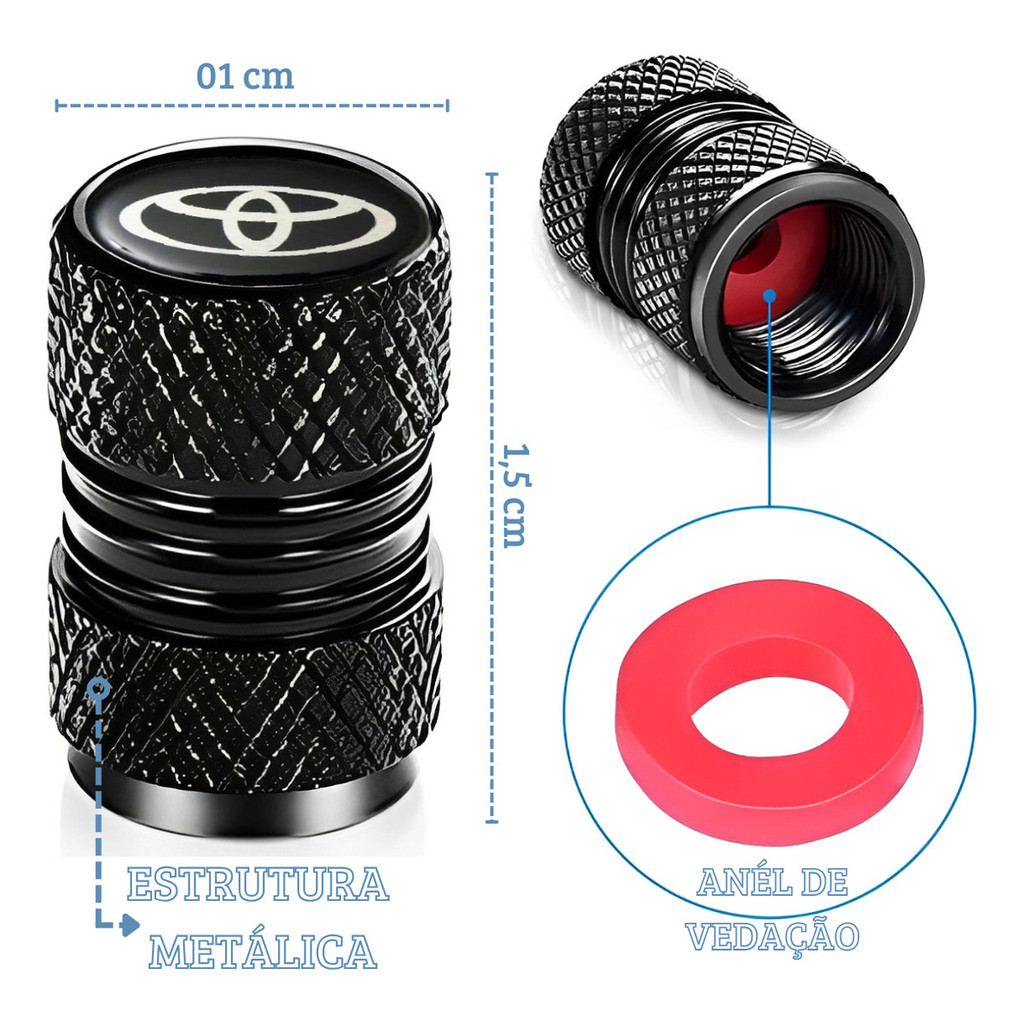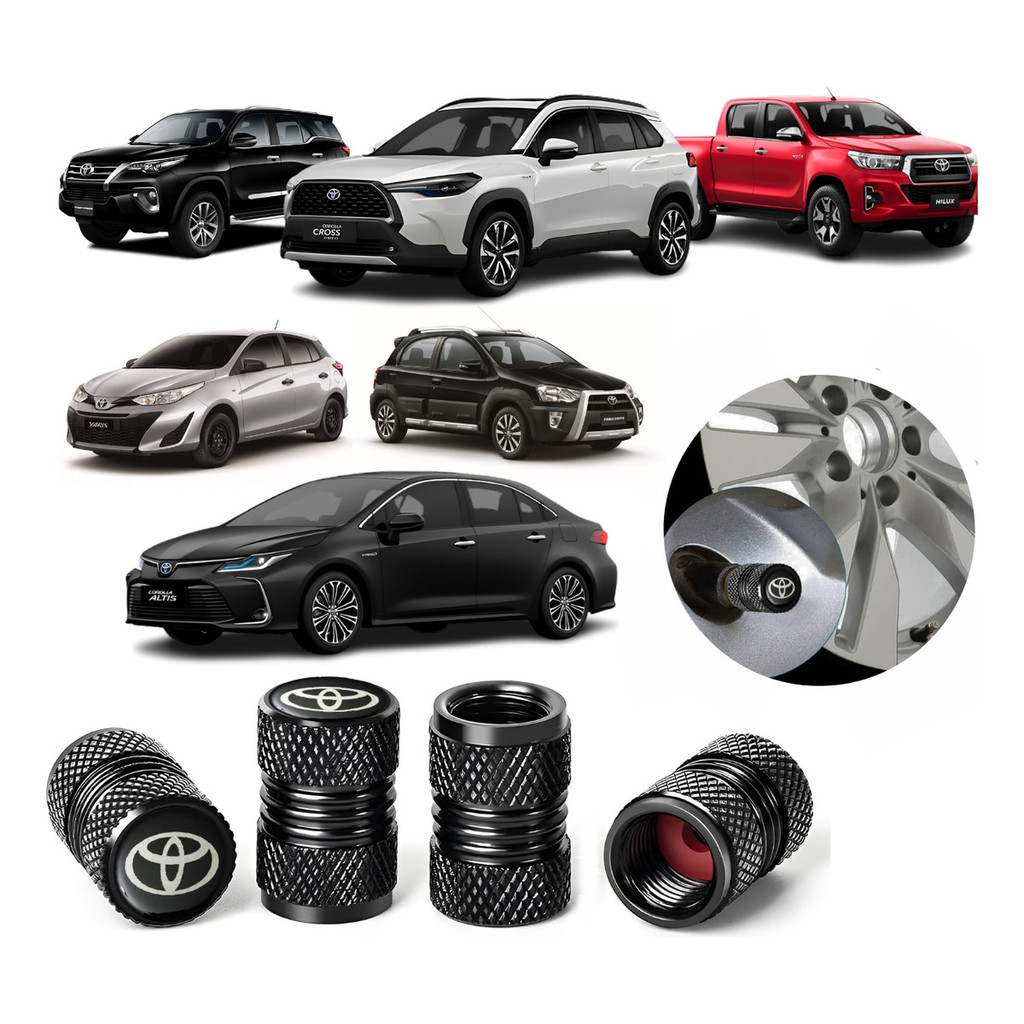 Kit 4 Tampas Bico Pneu Metalica Universal Para Veiculos Toyota Corolla Hilux Sw4 Yaris Corolla Cross