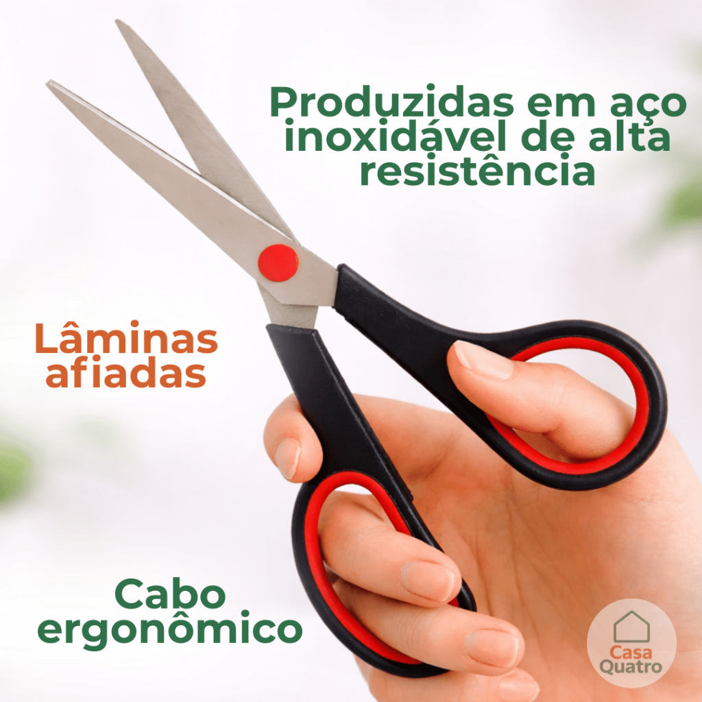 **ATENÇÃO** *Esse anúncio possui 4 itens* Kit 4 Tesouras Multiuso Domestico Cabo Ergonômico Aço Inox A Tesoura Multiuso em Aço é a escolha ideal para quem busca precisão, durabilidade e conforto em um único produto. Versátil e eficiente, ela atende perfeitamente às necessidades do dia a dia, seja para uso doméstico, escolar, artesanal ou até na cozinha. Um item indispensável que une corte seguro, ergonomia e alta resistência. –––––––––––––––––––––––––––––––––––––––––––––––––––––––––––––––––––––––– BENEFÍCIOS • Corte seguro e preciso • Lâminas afiadas que proporcionam cortes firmes e controlados, evitando falhas e retrabalho. • Versatilidade de uso • Durabilidade superior • Conforto e praticidade • Cabo ergonômico que se adapta à mão, reduzindo o cansaço durante o uso prolongado. • Estrutura reforçada que não entorta facilmente e suporta uso frequente. –––––––––––––––––––––––––––––––––––––––––––––––––––––––––––––––––––––––– CARACTERÍSTICAS • Lâminas em aço inoxidável • Lâminas afiadas de alta precisão • Cabo ergonômico anatômico • Estrutura resistente • Acabamento reforçado • Design leve e funcional • Uso doméstico e profissional –––––––––––––––––––––––––––––––––––––––––––––––––––––––––––––––––––––––– DIMENSÕES Modelo 22 cm Comprimento total: 22 cm Modelo 16,5 cm Comprimento total: 16,5 cm Modelo 19,5 cm Comprimento total: 19,5 cm Modelo compacto Comprimento aproximado: 14 cm –––––––––––––––––––––––––––––––––––––––––––––––––––––––––––––––––––––––– Se você já teve problemas com tesouras que perdem o fio rapidamente, travam no corte ou quebram com pouco tempo de uso, este modelo foi desenvolvido para evitar essas frustrações. O aço inoxidável garante maior resistência, enquanto o cabo ergonômico oferece firmeza e controle em cada movimento.