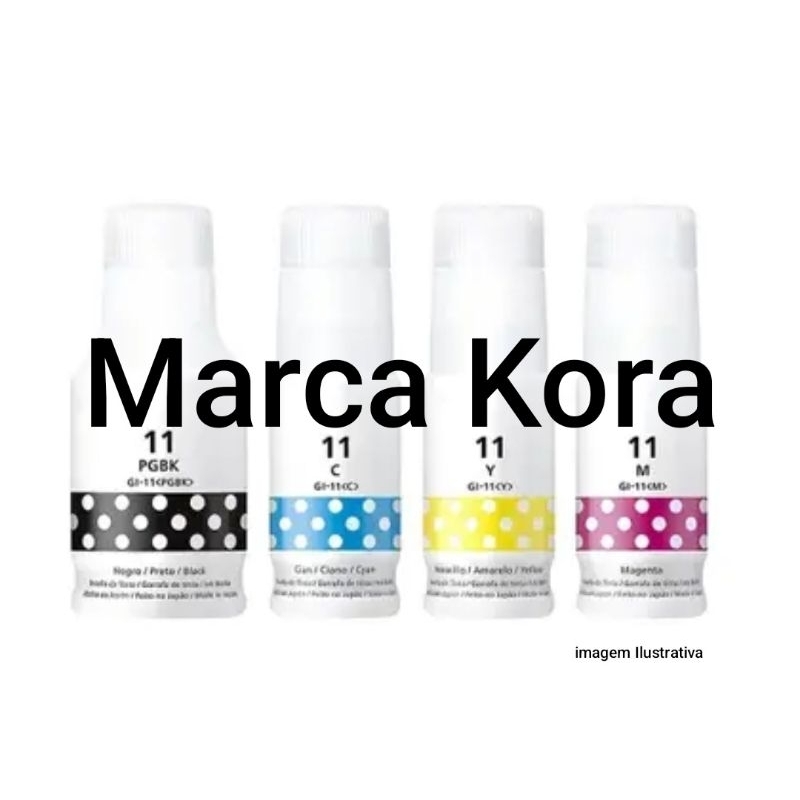 Kit 4 Tinta Kora Para Canon Gi-11 Gi11 G3160 G2160 - 4 Cores Tinta Preto - Amarelo - Magenta - Ciano