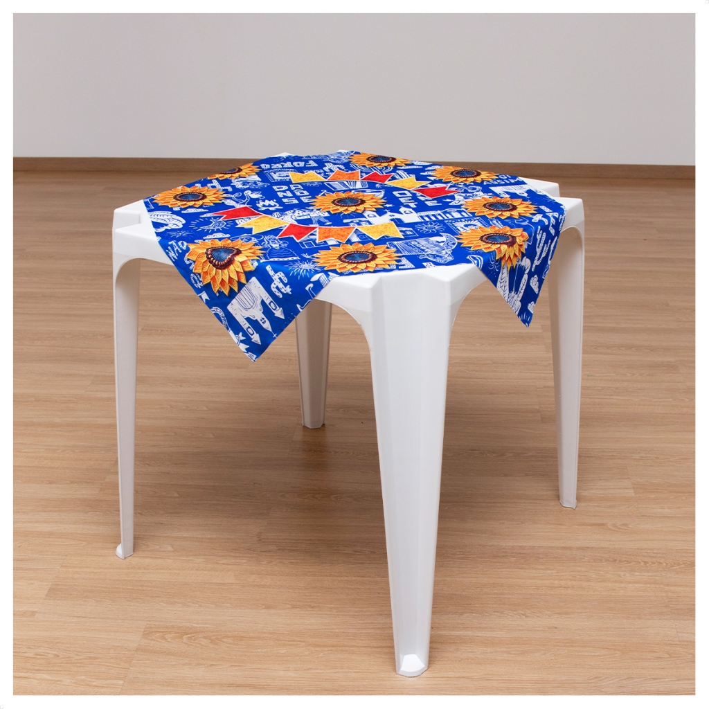 Kit 4 Toalhas de Mesa Festa Junina Tecido Lavável Girassol 75x75cm