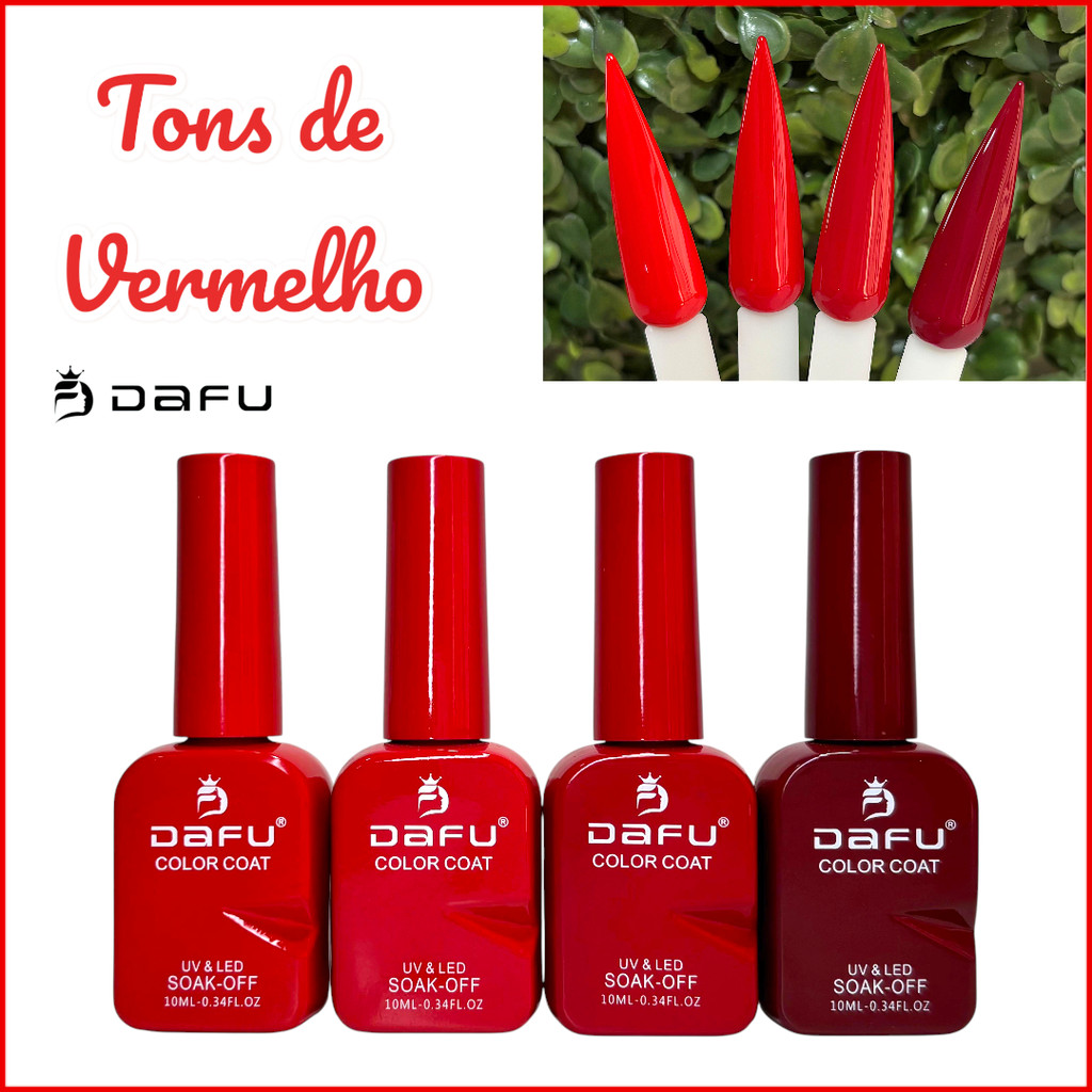 | Kit 4 Tons Vermelho - Esmalte em Gel Dafu - Camada Única - 10ml este produto | R$ 69,99 | 12% | 5.0/5 | 45 |
