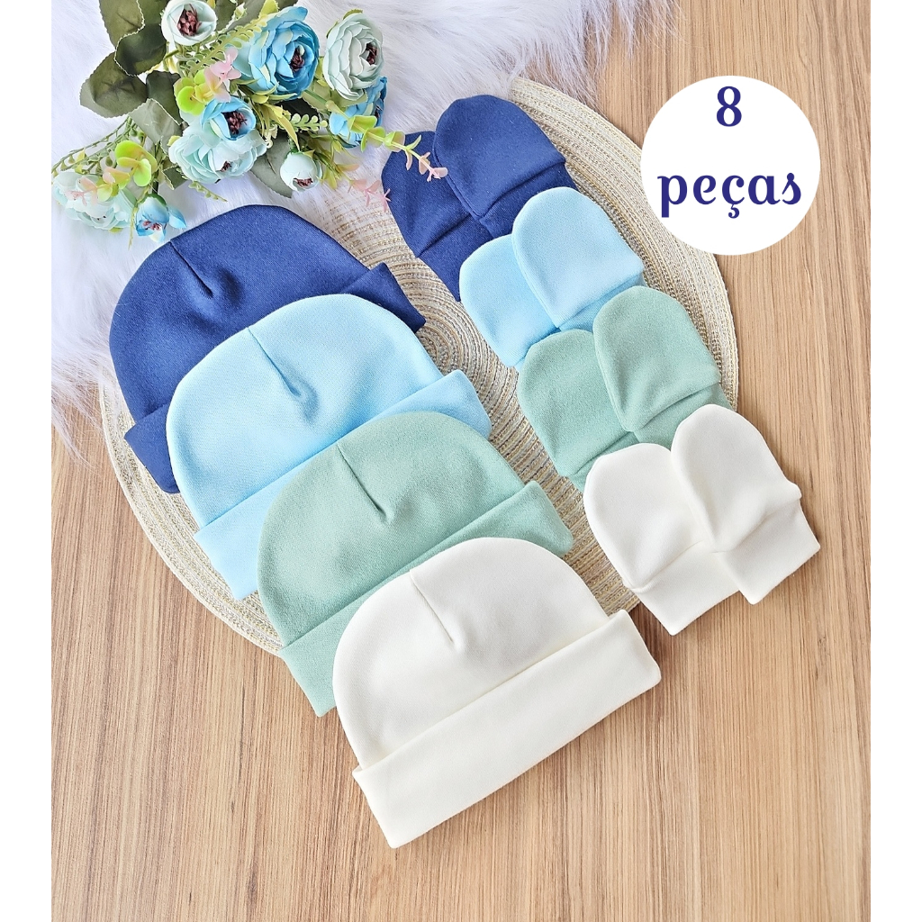Kit 4 Touca e 4 Luva Para Bebê Recém Nascido 100% Algodão Antialérgico Maternidade