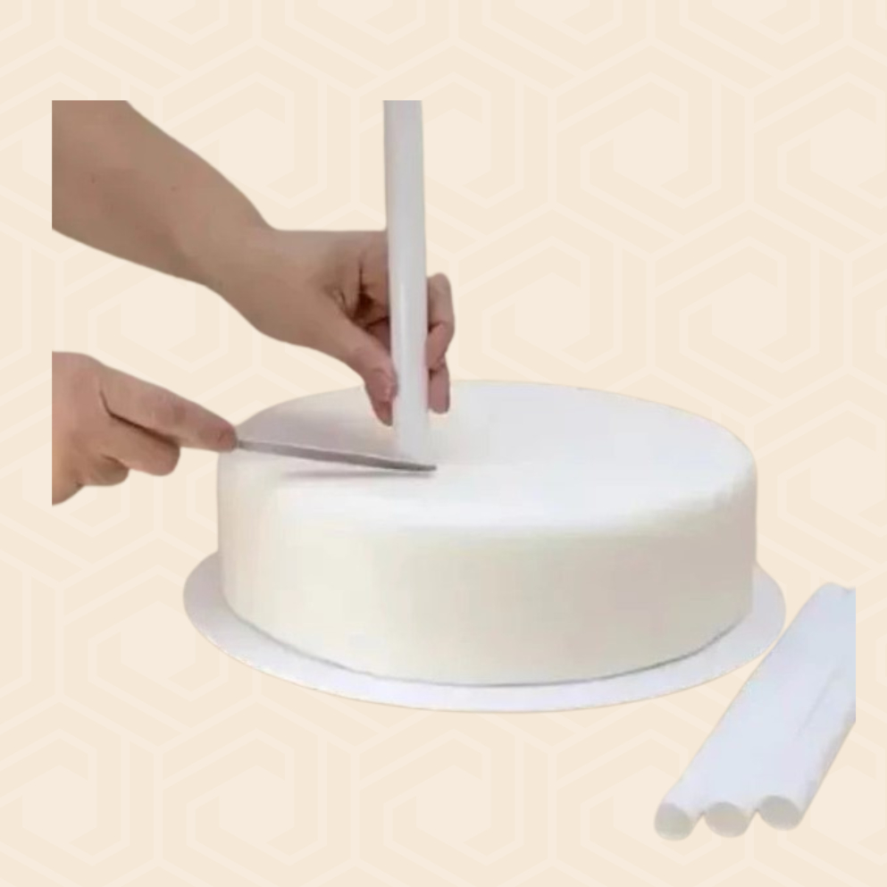 Este Kit contém: 4 unidades de tubos PP branco Medida: 30cm de comprimento 1,6cm de diâmetro Utilização: Estruturar bolos de andar