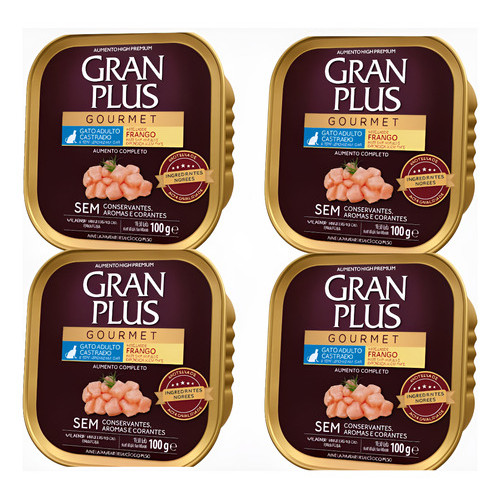 Kit 4 Un Gran Plus Gourmet Patê Gato Castrados Frango 100g