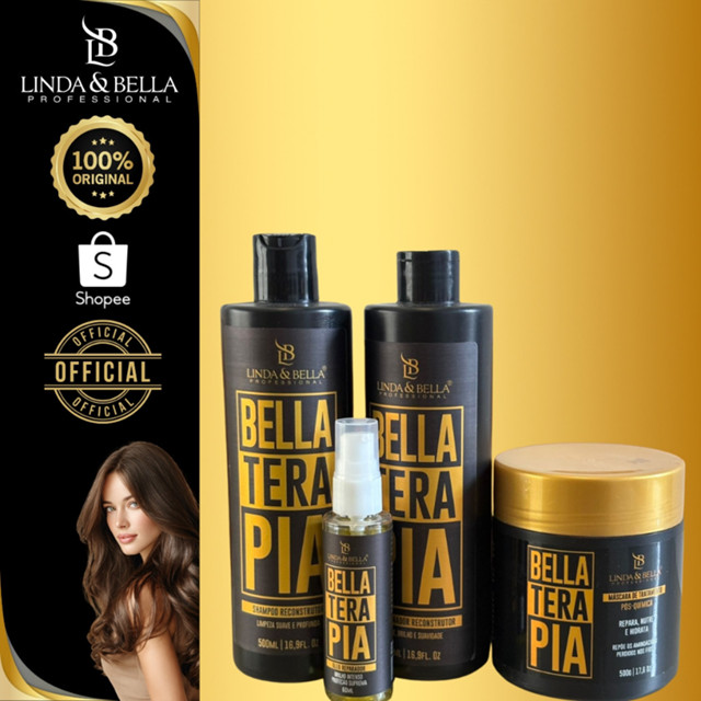 Kit Bellaterapia 4 Unidades – Tratamento Completo para Cabelos Intensamente Nutridos, Brilhantes e Restaurados Transforme sua rotina capilar com o Kit Bellaterapia, um combo poderoso com Máscara de Tratamento 500g + Shampoo 500ml + Condicionador 500ml + Óleo Reparador 60ml. Desenvolvido para quem busca resultados de salão em casa, ele atua profundamente na fibra capilar, garantindo nutrição, brilho extremo, maciez e redução imediata do frizz. ✨ O que vem no kit: Shampoo Bellaterapia 500ml: limpa sem ressecar e prepara o fio para receber o tratamento. Condicionador Bellaterapia 500ml: sela as cutículas, devolve a suavidade e facilita o desembaraço. Máscara de Tratamento Bellaterapia 500g: nutrição intensiva com ação reparadora que revitaliza até os fios mais danificados. Óleo Reparador Bellaterapia 60ml: finalização perfeita, brilho luminoso, proteção térmica e efeito antifrizz. 💜 Indicado para: todos os tipos de cabelo, especialmente os danificados, ressecados, quimicamente tratados ou sem brilho. 💥 Benefícios: Reconstrução e força Nutrição profunda Brilho intenso Controle de frizz Maciez imediata Proteção contra agressões externas Fios mais alinhados e sedosos Proporcione ao seu cabelo um tratamento completo e surpreenda-se com a evolução desde o primeiro uso. Bellaterapia – beleza que transforma!