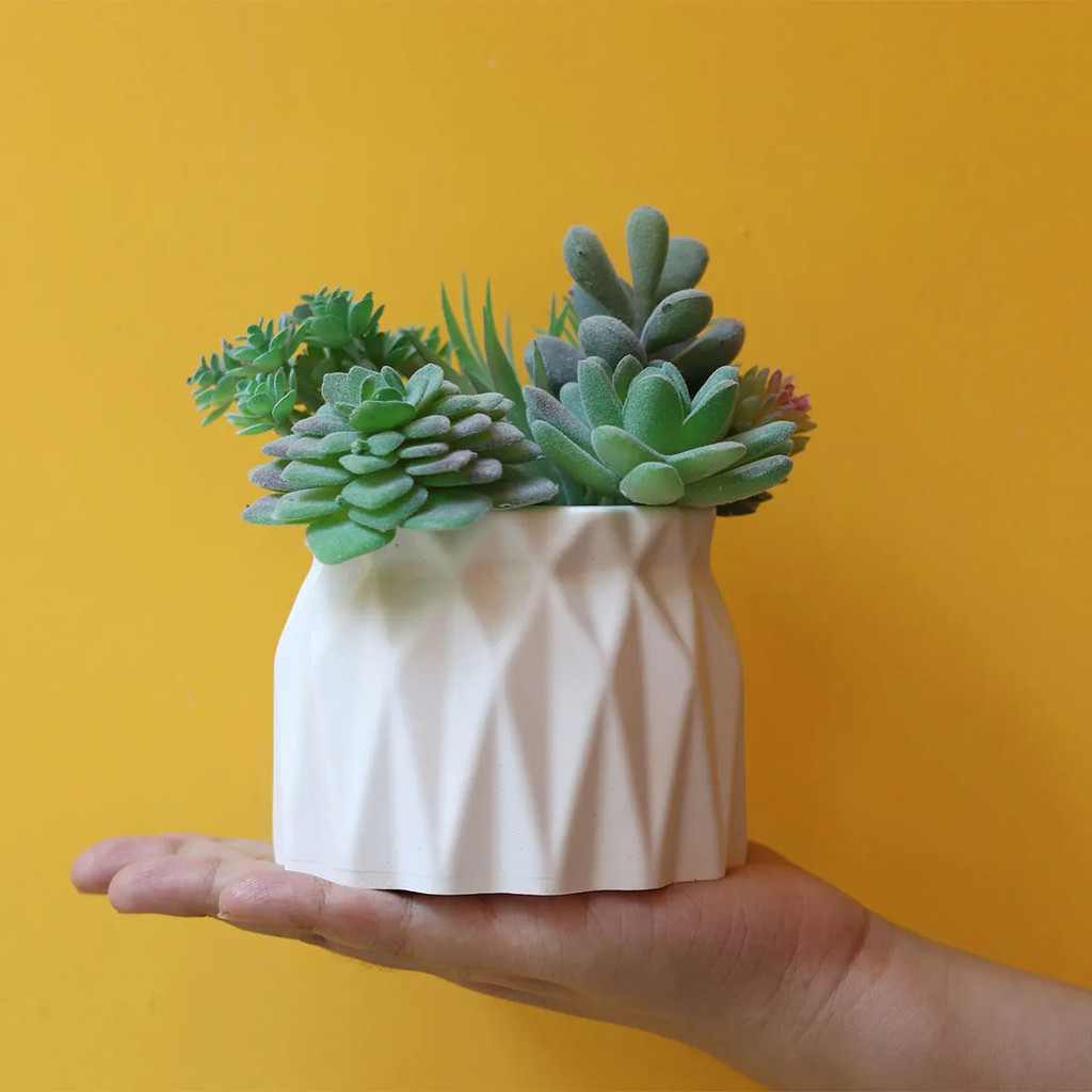 Kit 4 Vaso Decorativo de Gesso Texturizado para Suculentas Cactos e Outras Plantas