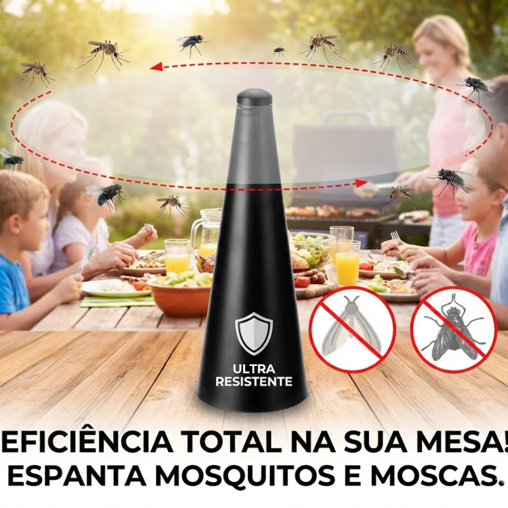 Kit 4 Ventiladores Espanta Moscas para Mesa Pilha (Preto) Chega de ficar abanando a comida ou cobrindo os pratos durante o almoço! Com este kit de 4 unidades, você protege sua mesa inteira de moscas e mosquitos de forma automática, higiênica e silenciosa. Ideal para churrascos, piqueniques e jantares em família. POR QUE VOCÊ PRECISA DISSO (BENEFÍCIOS): Proteção Total: O kit com 4 unidades permite cobrir mesas grandes, garantindo que ninguém precise comer rodeado de insetos. 100% Seguro e Sem Química: Afasta as moscas visualmente (pelo reflexo nas hélices) e pelo movimento de ar. Não usa veneno, nem cheiro forte, sendo seguro para deixar perto da comida e de crianças. Hélices Macias (Stop Safety): Se você esbarrar a mão nas hélices, elas param na hora e não machucam. Alimentação: Funciona com pilhas (para usar no jardim ou camping) Silencioso: Você nem percebe que ele está ligado, mas os insetos percebem e ficam longe. CARACTERÍSTICAS TÉCNICAS: Quantidade: Kit com 4 Aparelhos. Cor: Preto (Discreto e Moderno). Alimentação: Pilhas Material: Plástico ABS resistente. Tecnologia: Pontos holográficos nas lâminas que refratam a luz e espantam os insetos.
