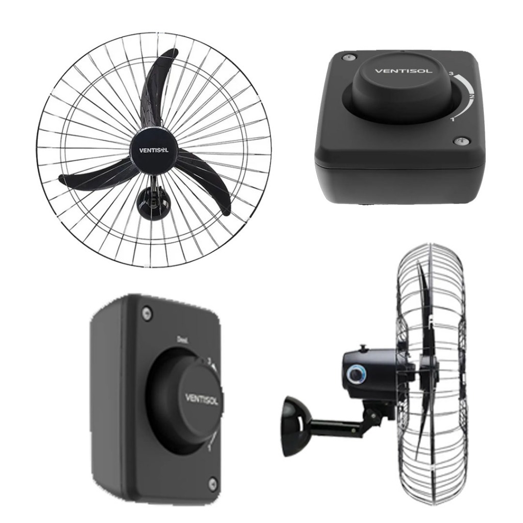 Kit 4 Ventiladores De Parede 60cm Diâmetro Forte Ventisol 3 Pás Preto Potente Igreja Academia Lojas