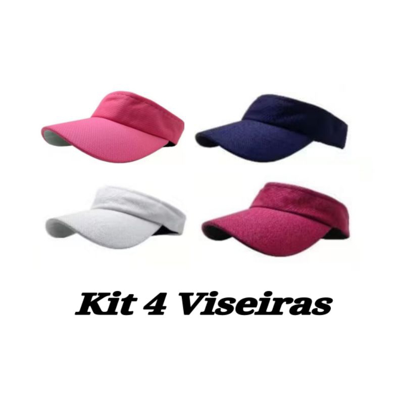 Kit 4 Viseiras Material Dri fit Quantidade: 4 Viseiras Ideal para Praia, Piscina, Ciclismo, Corrida, Caminhada e Passeios em Geral. Tamanho único. Ajustável. Produto Leve de Excelente Qualidade e Acabamento. Dúvidas, nos procure via Chat. Envio imediato!!