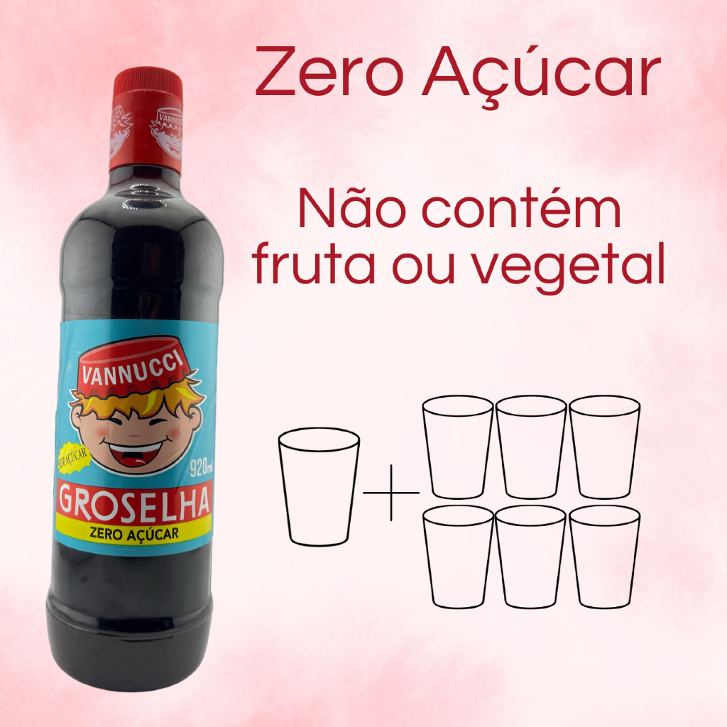 Kit 4 Xarope de Groselha Vannucci Zero Açúcar 920ml Recomendado Para Diabéticos Milkshake