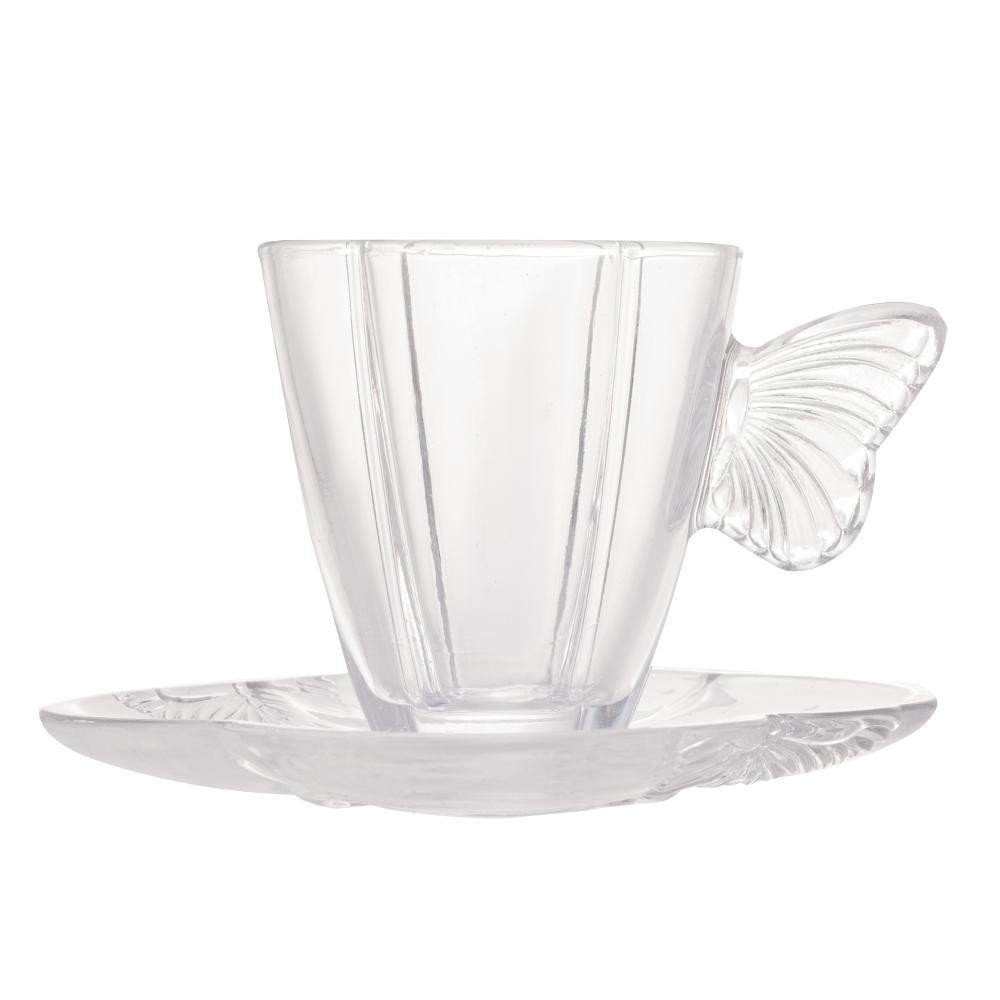 Kit 4 Xícaras Café Wolff com Pires Butterfly Vidro Premium Elegante