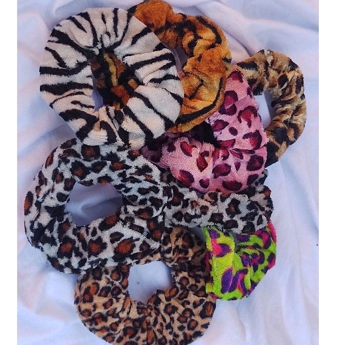 Kit 4 Xuxinhas Scrunshie Veludo Prendedor de Cabelo Protege os fios Animal Print