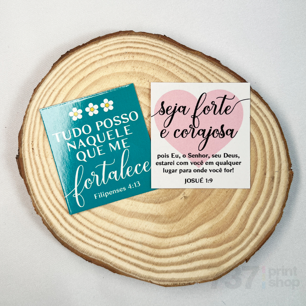 Mini Cartão de Agradecimento Motivacional - Tamanho 4x5cm Surpreenda seus clientes com mensagens inspiradoras e agradeça com carinho! Ideal para o seu unboxing e para criar uma experiência única. Total de 4 modelos disponíveis: (Não é possível comprar modelos separados ou adquirir mais unidades de um modelo específico) Kit com 40 Cartões: 10 Unidades de cada modelo Kit com 80 Cartões: 20 Unidades de cada modelo Kit com 120 Cartões: 30 Unidades de cada modelo Kit com 160 Cartões: 40 Unidades de cada modelo Kit com 200 Cartões: 50 Unidades de cada modelo Kit com 240 Cartões: 60 Unidades de cada modelo Modelos disponíveis: Verde: "Tudo posso naquele que me fortalece ♡ Filipenses 4:13" Claro: "Seja forte e corajosa pois eu, Senhor, seu Deus, estarei com você em qualquer lugar para onde você for! José 1:9" Rose: "Olhe para cima, é de lá que vem sua força." Branco: "Entrega o teu caminho ao Senhor, confia nele, e ele tudo fará! ♡ Salmos 37:5" Especificações do Produto: Tamanho Aproximado: 4,8x4,3 cm cada Material: Papel Couchê 250g – qualidade superior e firmeza Impressão: Colorida na frente e verso branco Impressão de alta qualidade Produto: PRONTA ENTREGA - Envio imediato em até 24 horas! Perfeito para complementar suas embalagens e presentear seus clientes com um toque especial e significativo!
