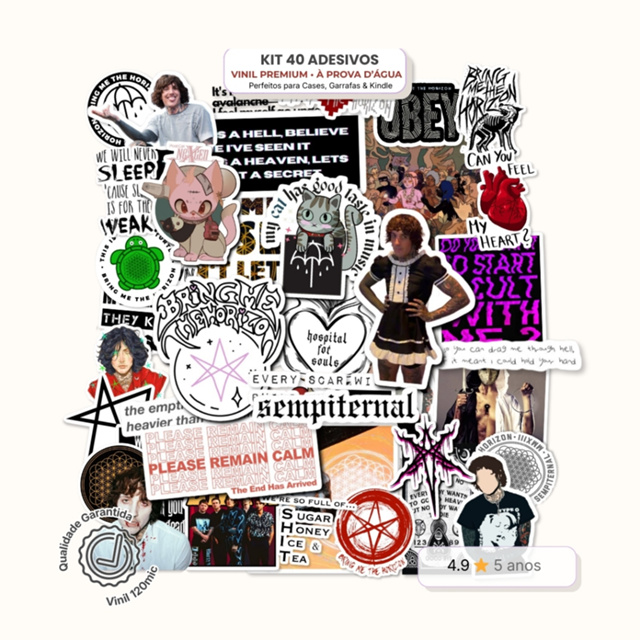 | Kit 40 Adesivos BMTH - Vinil à Prova D’Água | Stickers Papelaria Cr... este produto | R$ 23,99 | 51% | 3.5/5 | 2 |