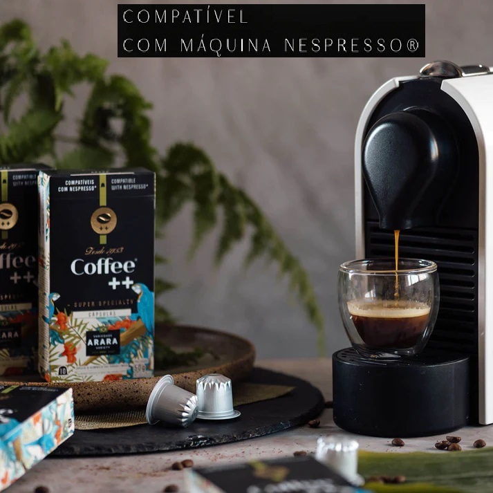 Que tal um cafezinho espresso para te acompanhar durante o dia e oferecer para uma pessoa especial? O Kit Especial da Coffee Mais reúne café especial em cápsulas acima de 84 pontos, que separamos com carinho para você. Saúde! Kit Especial da Coffee Mais, com 40 cápsulas: 1 caixa com 10 cápsulas Super Crema, que tem como identidade a doçura e intensidade do chocolate em um café que transmite brasilidade logo no primeiro contato, com perfume marcante de um café espresso original e intensidade 10. 1 caixa com 10 cápsulas Cerrado Mineiro. Café especial com notas sensoriais de doce de marmelo, frutas amarelas e intensidade 5. 1 caixa com 10 cápsulas Arara. Esse café especial mostra potência de sabor e notas de chocolate, caramelo, além de lembranças de frutas amarelas, com intensidade 8. 1 caixa com 10 cápsulas do nosso Clássico. Café especial com notas doce de leite e chocolate ao leite, com intensidade 8. Nossas cápsulas são compatíveis com máquinas Nespresso®?*. Todas as cápsulas são de polímeros, com vedação em alumínio, o que garante mais frescor ao café. +84 PONTOS | O café superespecial acima de 84 pontos é avaliado de acordo com padrões internacionais da Specialty Association Coffee (SCA). Isso significa que a bebida cumpre regras internacionais de qualidade para chegar a essa pontuação. Tanto que não necessita de açúcar, já que tem doçura natural, acidez equilibrada, notas sensoriais e muitos sabores. Tudo com afeto, inspiração e conexões. Viva cada compasso dessa experiência e seja bem-vindo ao extraordinário mundo Coffee ++! CAFÉ ESPECIAL X CAFÉ TRADICIONAL | Café especial é a potência de sabor, com grãos 100% arábicas, aspectos sensoriais diferenciados, acidez equilibrada e doçura natural. Já o café tradicional pode ter a mistura de grãos Robustas (conilon), o que significa mais concentração de cafeína, amargor e ausência de aspectos sensoriais. Dessa forma, para esconder os defeitos, a indústria carboniza a torra dos grãos. Que tal abandonar o café queimado e conhecer o doce natural dos grãos especiais? *Exceto modelos VERTUO.