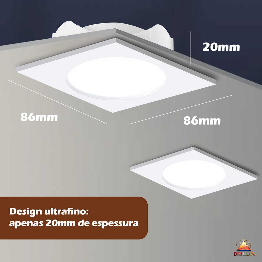 Kit 40 Luminária Spot LED 7W Direcionável Quadrado Embutir Luz Frio/Quente/Neutra Bivolt Durável